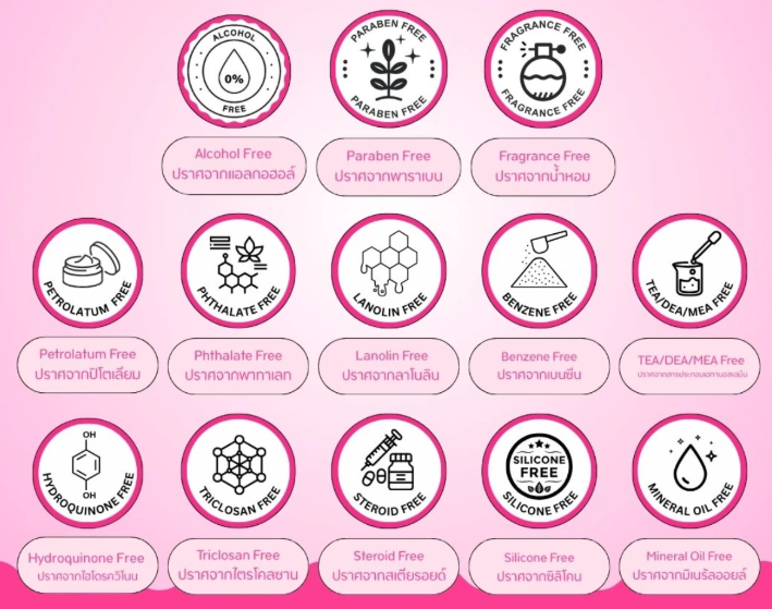 アルコール/パラベン/香料/ワセリン/フタル酸エステル/ラノリン/ベンゼン/TEA・DEA・MEA/ハイドロキノン/トリクロサン/ステロイド/シリコン/ミネラルオイル 不使用