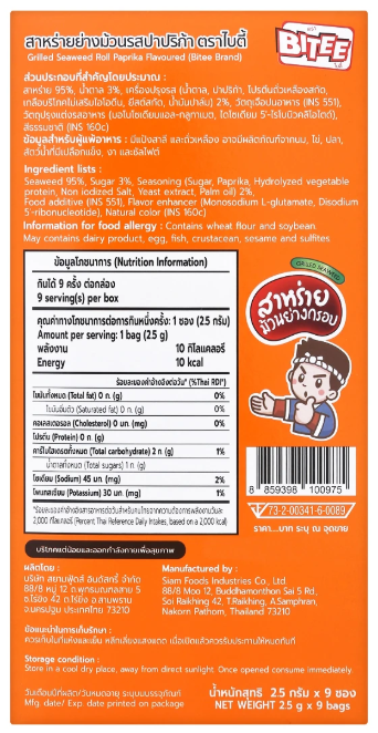 🌶 Bity Grilled Seaweed Roll – Paprika Flavor (2.5g x 9 Bags) 🌶