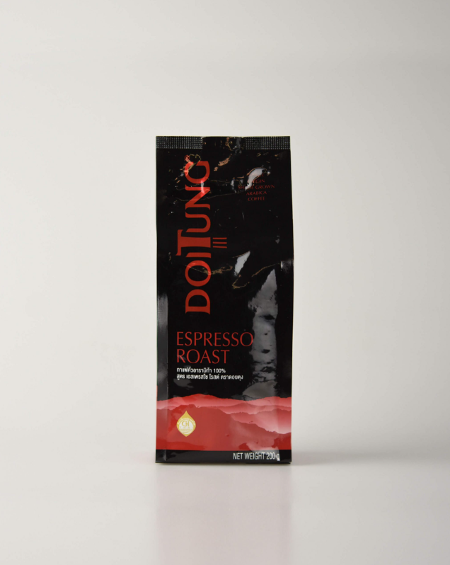 DoiTung Espresso Roast is crafted from 100% single-origin Arabica beans grown under forest shade in Doi Tung, Chiang Rai. With a thick body and robust flavor, this coffee is the perfect base for milk-based drinks like lattes and cappuccinos.