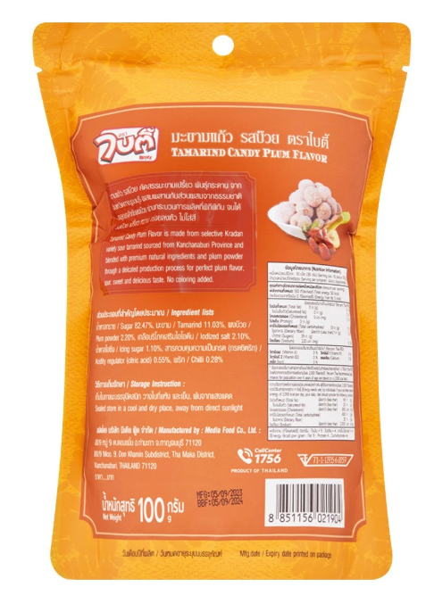 Bitee Tamarind Candy Plum Flavor is made from carefully selected Kradan variety sour tamarind from Kanchanaburi, Thailand, blended with natural plum powder for a balanced sweet and sour taste. No artificial coloring added — just pure fruity goodness. Perfect for snacking anytime!